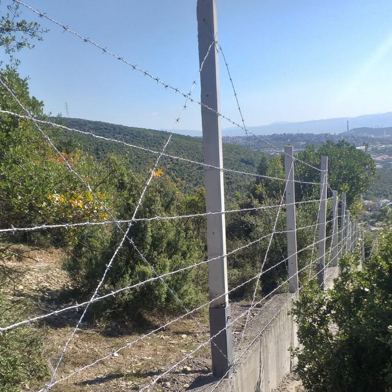 4. Sabitleme (Bağlama): Gerdirilen dikenli tel, her direğe özel bağlama telleri veya kancalar aracılığıyla sağlam bir şekilde bağlanır. Genellikle istenen yüksekliğe göre 3 ila 5 sıra arasında uygulama yapılır.